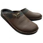 Pantos Hausschuh / Pantoffel Eichenblatt braun/oliv
