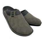 Pantos Hausschuh / Pantoffeln Nubuk grau/schwarz