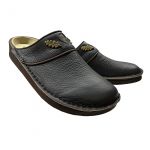 Pantos Hausschuh / Pantoffel Blatt schwarz/braun