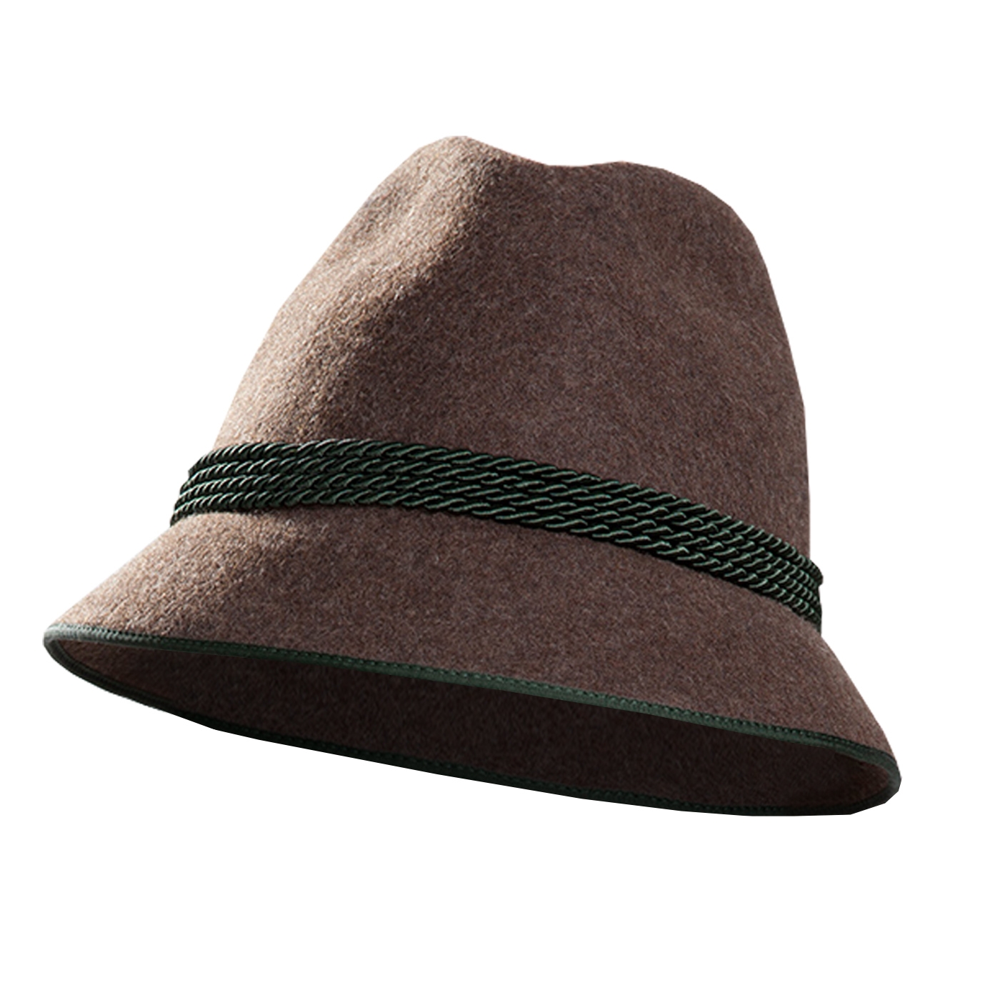 Rustikaler Wollhut mit tannengrüner Kordelgarnitur aus 100% Wolle.