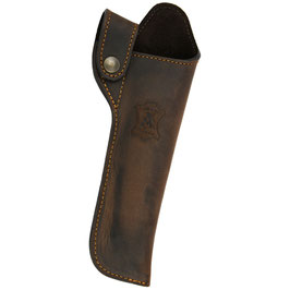 Kammerstängel-Etui / Verschluss-Etui aus hochwertigstem und wasserfestem Nubuk-Rindsleder (imprägniert), Futter aus Veloursleder und Riemenschlaufe. Der Saum wurde genäht und handbemalt.
