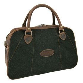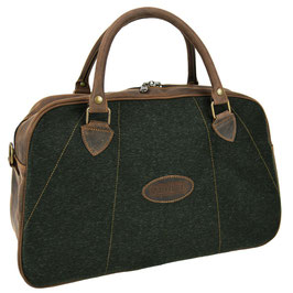 Kleiner Weekender / Kleine Reisetasche aus bestem Moessmer-Loden und hochwertigstem und wasserfestem Nubuk-Rindsleder (imprägniert), Innenfutter, Innentasche mit Reißverschluss und Lederschultergurt. Der Saum wurde genäht und handbemalt.