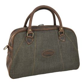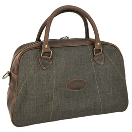 Kleiner Weekender / Kleine Reisetasche aus extrem abriebfestem Cordura-Gewebe und hochwertigstem und wasserfestem Nubuk-Rindsleder (imprägniert), Innenfutter, Innentasche mit Reißverschluss und Lederschultergurt. Der Saum wurde genäht und handbemalt.