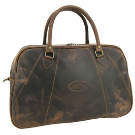 Kleiner Weekender / Kleine Reisetasche aus hochwertigstem und wasserfestem Nubuk-Rindsleder (imprägniert), Innenfutter, Innentasche mit Reißverschluss und Lederschultergurt. Der Saum wurde genäht und handbemalt.