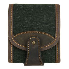 Patronen-Etui aus bestem Moessmer-Loden und hochwertigstem und wasserfestem Nubuk-Rindsleder (imprägniert), Futter aus Antioxidationsstoff, elastische Zellen, Haltevorrichtung und Gürtelschlaufen. Der Saum ist genäht und handgemalt. Für 10 Patronen im Kaliber .223 bis .300