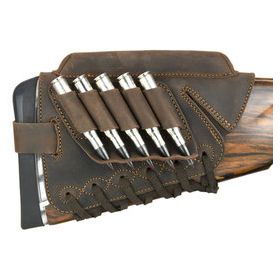 Schafterhöhung mit Patronenetui aus hochwertigstem und wasserfestem Nubuk-Rindsleder (imprägniert), mit Veloursleder-Futter. Dank der Lederschnürung und der Einstellbarkeit des hinteren Riemens ist die Erhöhung für jeden Schaft geeignet. NICHT für Linksschützen. In den Varianten (Höhen) 28, 20 und 10 mm. Wahlweise in traditioneller brauner Ledergerbung (ideal für Holzschäfte), oder in grüner Ledergerbung (ideal für Kunststoff- oder Carbonschäfte).