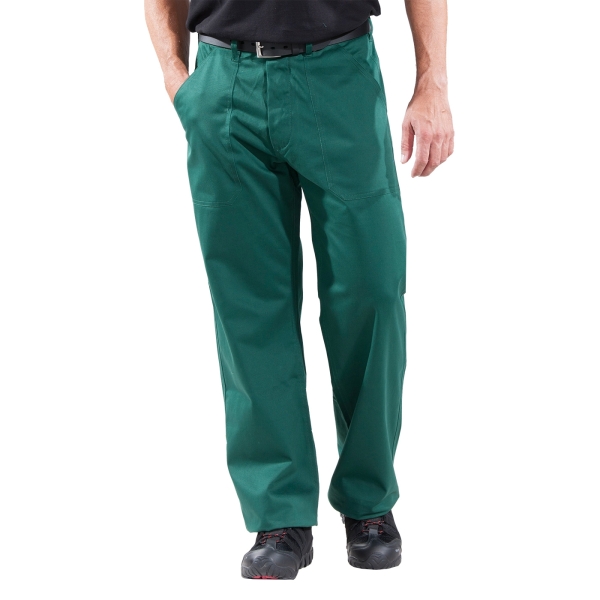 DIE ?PURE COTTON" einfarbige Arbeitsbekleidung aus reiner Baumwolle, ca. 280 g/m², in robuster Qualität? für den Arbeitsalltag in klassischem Design und Farben. Hose hinten mit Dehnbund, Bund mit Gürtelschlaufen, 2 große Schubtaschen, Gesäßtasche und Zollstocktasche rechts.Hosenschlitz mit Knopfverschluss.