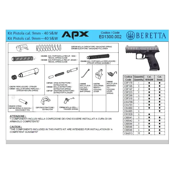 Kit parti ricambio pistola APX cal. 9MM / 40S&W