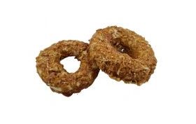 Hierbei handelt es sich um schonend getrocknetes Unterhaut-Bindegewebe (die zweite Hautschicht) vom Rind mit leckerem Hähnchenfleisch umwickelt. Die Donuts bestehen zu 57 % aus Hähnchen, zu 38 % aus Rinderhaut und haben nur 2 % Fett! . Dieses Gewebe ist sehr stark und zäh.