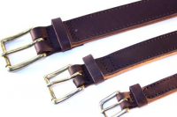 Exklusives Halsband aus hochwertigem braunem Fettleder mit massiven Messingbeschlägen und naturfarbenem Softleder unterlegt.