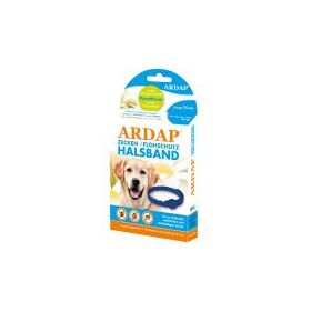 Art.Nr.: 77220Das ARDAP Zecken- & Flohschutzhalsband mit dem natürlichen Wirkstoff ?Pyrethrum? aus der Chrysantheme ist ein hochwirksames Mittel zur Anwendung großen Hunden ab 25 kg. Durch die repellierende Wirkung bietet das ARDAP Zecken- & Flohschutzhalsband einen zuverlässigen, natürlichen und lang anhaltenden Schutz vor Zecken (Rhipicephalus sanguineus, Ixodes ricinus) und Flöhen (Ctenocephalides canis). Das Halsband schützt unmittelbar nach dem Anlegen bis zu 4 Monaten vor dem Wiederbefall mit Zecken und Flöhen. Nach dieser Zeit oder bei erneutem Parasitenbefall kann das ARDAP Zecken- & Flohschutzhalsband erneuert werden.