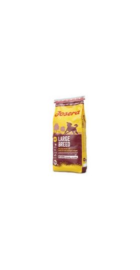 JOSERA Large Breed - dieses Futter ist speziell auf die Bedürfnisse unserer nimmersatten Leckermäuler abgestimmt! Zu hastigem Fressen wird durch die extra großen Kroketten vorgebeugt, die außerdem einen langen Kauspaß bieten. Auch unsere wohlgenährten Schlemmer können durch einen erhöhten Ballaststoffanteil für mehr Sättigung und einen reduzierten Fettgehalt in den Genuss von JOSERA Large Breed kommen.