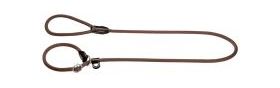 Dressurhalsung und Führleine sind aus einem Stück. Die Halsung ist durch einen Stoppring und Lederschieber stufenlos verstellbar.