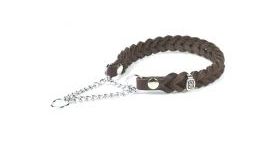 Geflochtene Halsbänder aus braunen Fettleder,