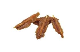 Hierbei handelt es sich um schonend getrocknetes Unterhaut-Bindegewebe (die zweite Hautschicht) vom Rind mit leckerem Hähnchenfleisch umwickelt. Die Sticks bestehen zu 87,5 % aus magerem Hähnchenfleisch und zu 8,0 % aus getrockneter Rinderhaut und sind ca. 15 cm lang und wiegen im Schnitt ca. 30 g. Dieses Gewebe ist sehr stark und zäh.