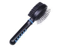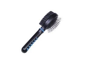 Produktinformationen "COMFORT LINE Bürste doppelt" Diese zweiseitige Universalbürste, bestehend aus einer Stahlbürste und einer Bürste mit Nylonborsten, ist für alle Hunde und Katzen geeignet. Die Stahlbürste (Borsten mit Kunststoffschutz) massiert die Haut und fördert gleichzeitig die Durchblutung. Die Nylonbürste sorgt für ein gepflegtes, glänzendes Fell. Der Kunststoffgriff liegt sicher & bequem in der Hand und sorgt für komfortables Bürsten. - mit Stahlborsten mit Schutz und Nylonborsten