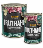 Truthahnfleisch, -leber, -herz, -muskelmagen (63 %); Fleischbrühe von Pute (26,5 %); Reis, gekocht (4 %); Zucchini (4 %); Chiasaat (1 %); Mineralstoffe (1 %); Distelöl (0,5 %)