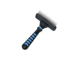 Art.Nr.: 50178Produktinformationen "COMFORT LINE Entwirrungsstriegel rotierend zweireihig" Dieser Entwirrungsstriegel der Serie "Comfortline" ist speziell zur Pflege von langem, dichtem Fell und für empfindliche Hunde geeignet. Die 39 langen, rotierenden Zähne in zwei Reihen passen sich dem Kämmdruck an und sind deshalb besonders sanft und schonend. Dieser Striegel sorgt dafür, dass die Unterwolle schonend entfernt werden kann. Dies hält das Fell gesund und geschmeidig. Der Kunststoffgriff liegt sicher & bequem in der Hand und sorgt für komfortables Bürsten. - 39 lange rotierende Zähne (zweireihig)