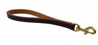 Exklusiver Kurzführer mit Schlaufe aus hochwertigem braunem Fettleder, mit massiven Messingbeschlägen und mit hellbraunem Softleder unterlegt; Handnaht !