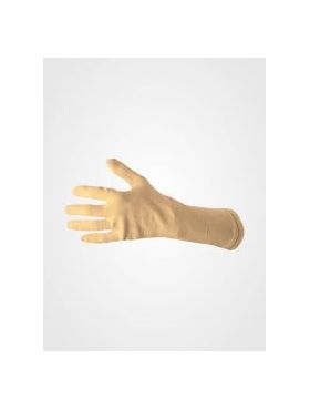 Bei Kauf erhalten Sie ein Pack Unterziehhandschuhe Natur, 33 cm Lang mit Knöchelschutz.