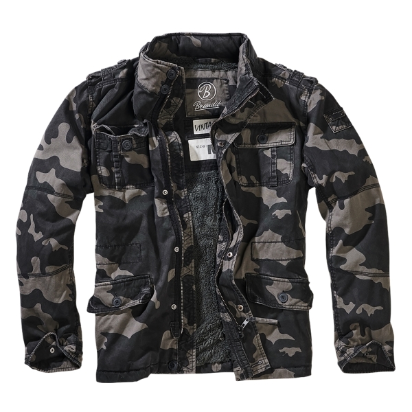 Modifizierte Feldjacke mit Teddyfutter, Logo Badge, versteckte Kapuze im Kragen, Stehkragen mit Kunstlederapplikation (100% Polyurethan), Used-Effekte.