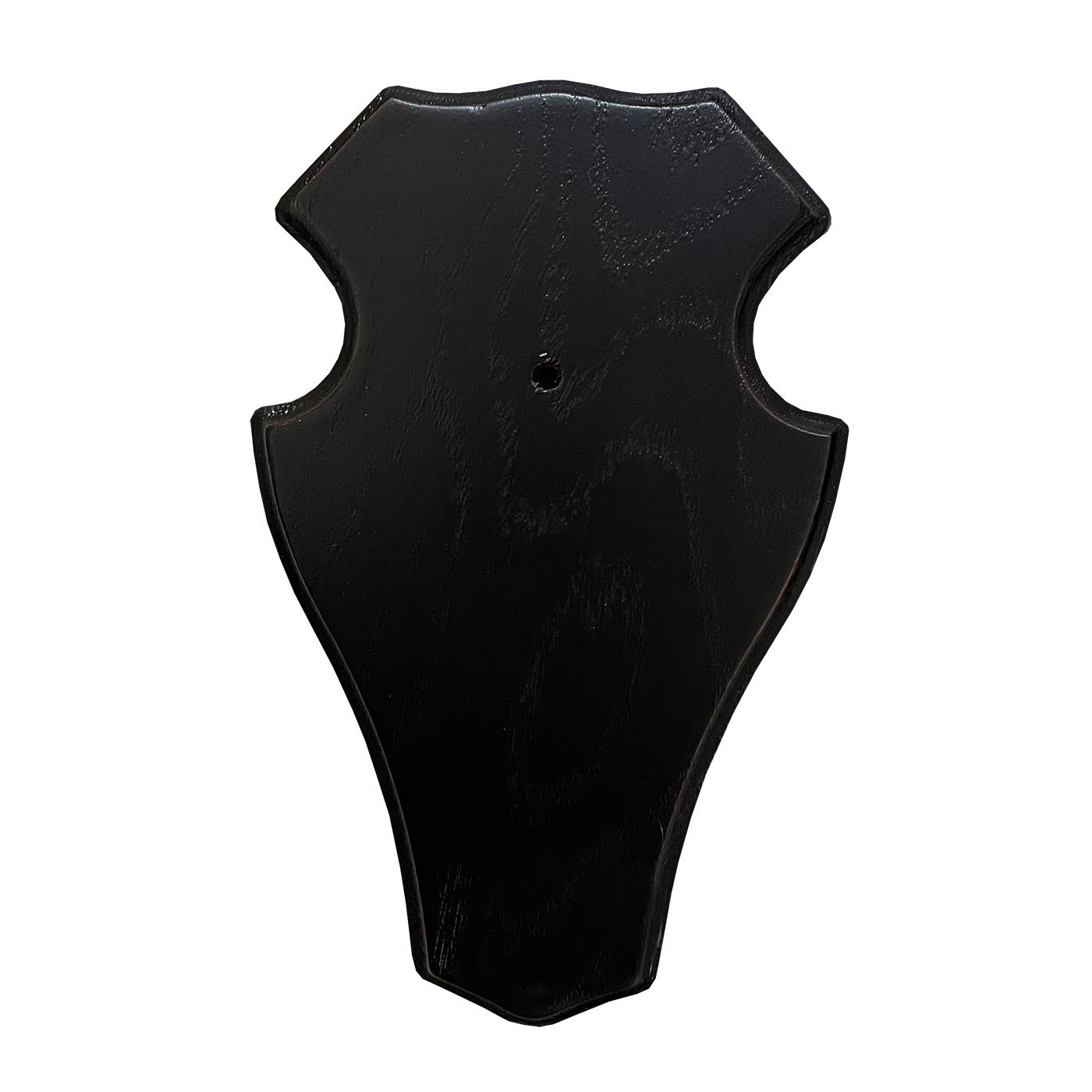 Massive Eiche dunkel, mit Ausfräsung und Klammer für Gebissleiste. Maße ca.: H/B/T 19 x 12 x 1,5 cm.