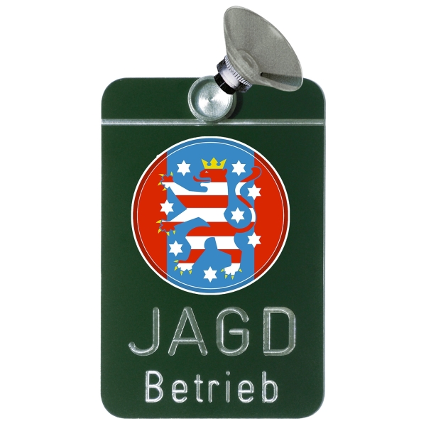Aus grün-eloxiertem Aluminium mit eingravierter Schrift. Saugnapf hält durch einen Magneten das Schild. Maße: 8 x 12 cm.