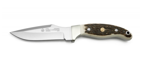 Das PUMA Hunter's Companion ist ein hochwertiges und strapazierfähiges Allroundmesser. Aus diesem Grund ist es ist beliebt bei Jägern, Outdoor-Enthusiasten und Messerliebhabern. Das PUMA Hunter's Companion kann gesetzeskonform mitgeführt werden, das es eine Klingenlänge von 107 mm hat. Die Klingenstärke beträgt 3,7 mm. Die Daumenauflage ist hinter dem Griff mit einer Riffelung versehen, diese gewährleistet eine sichere Druckverteilung bei Schneidarbeiten, ohne abzurutschen. Der Griff ist aus Hirschhorn gefertigt und liegt sehr gut in der Hand.