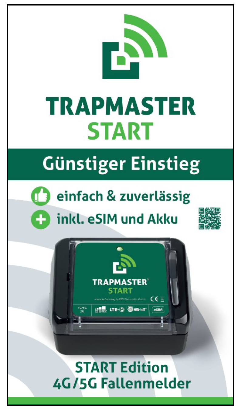 Der TRAPMASTER ist ein elektronisches Fangmeldesystem. Schwerpunkt liegt auf Anwenderfreundlichkeit & Zuverlässigkeit, flexiblen Benachrichtigungsoptionen per Push-Nachricht, Mail oder Anruf über REVIERWELT, automatischer Guthabenüberwachung und Guthabenwarnung, SIM-Karte aufladbar über REVIERWELT, Ladezustandsüberwachung und -Warnung. Absolut tierschutzkonforme Fallenüberwachung!