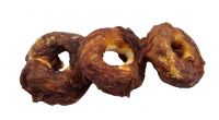Hierbei handelt es sich um schonend getrocknetes Unterhaut-Bindegewebe (die zweite Hautschicht) vom Rind mit leckerem Entenfleisch umwickelt. Die Donuts bestehen zu 42 % aus Ente, zu 50 % aus Rinderhaut und haben nur 3,5 % Fett! . Dieses Gewebe ist sehr stark und zäh.