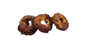 Hierbei handelt es sich um schonend getrocknetes Unterhaut-Bindegewebe (die zweite Hautschicht) vom Rind mit leckerem Entenfleisch umwickelt. Die Donuts bestehen zu 42 % aus Ente, zu 50 % aus Rinderhaut und haben nur 3,5 % Fett! . Dieses Gewebe ist sehr stark und zäh.