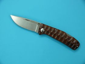 Backlock Jäger Taschenmesser ?Spezial Droppoint? mit beidseitigem Nagelhieb und mattierter Klinge aus CPMS90V, Beschalung aus Wüsteneisenholz Standardmaserung, gegroovte Ausführung, Griffstärke 14,5 mm in der Mitte, Gesamtlänge 204 mm, Klingenlänge 86,5 mm, Klingenstärke 3,0 mm, Gewicht ca. 155 g