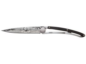 Wunderschönes Deejo Messer 37g mit Griff aus Ebenholz und dem Motiv Fahrrad