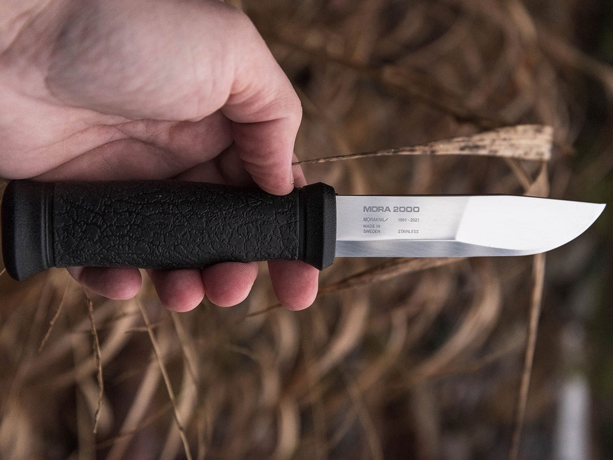Das Mora 2000 Jubiläumsmesser überzeugt mit seiner haarscharf geschliffenen Klinge aus kaltgewalztem, rostfreiem Schweden-Stahl/ Sandvik-Stahl.