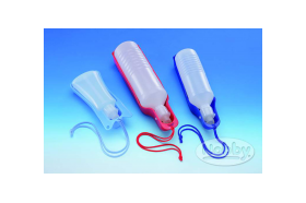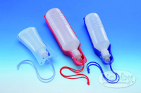 Einfache Handhabung: Die Flasche ausklappen, durch Zug den Verschluß öffnen und die Schale durch Druck auf die Flasche füllen.