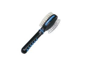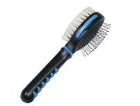 Produktinformationen "COMFORT LINE Bürste doppelt Sensitive klein" Diese zweiseitige Universalbürste "Sensitive", bestehend aus einer Stahlbürste und einer Ziegenhaarbürste, ist für Hunde, Katzen, Welpen und Kitten geeignet. Die Stahlbürste (Borsten mit Kunststoffschutz) massiert die Haut und fördert gleichzeitig die Durchblutung. Die Ziegenhaarbürste sorgt für ein gepflegtes, glänzendes Fell - sie ist besonders geeignet bei empfindlicher junger Haut und junges Fell. Zusätzlich ist die Bürste mit einem herausnehmbaren Flohkamm ausgestattet. Der Kunststoffgriff liegt sicher & bequem in der Hand und sorgt für komfortables Bürsten. - mit Stahlborsten mit Schutz und Ziegenhaarborsten