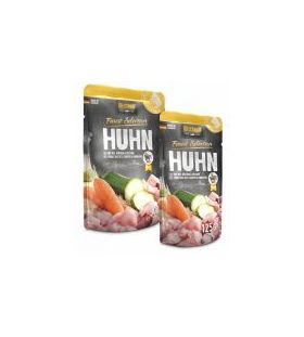 Exzellente Rezepturen in praktischen Einzelportionen. Saftiges Fleisch, mit raffinierten Zutaten verfeinert, wird schonend im Portionsbeutel gegart. Kalt gepresstes Distelöl liefert essentielle ungesättigte Fettsäuren. Außergewöhnlich schmackhaft und bekömmlich eignet sich BELCANDO® Finest Selection hervorragend für sensible oder wählerische Hunde.