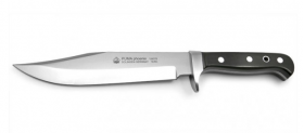 Das PUMA Phoenix ist ein gewaltiges Bowie-Messer. Benannt ist es nach der Hauptstadt des US-Bundesstaates Arizona. Schon damals gehörte ein Bowie zur Standardausrüstung von Cowboys, da es ein besonders robustes und scharfes Arbeitsmesser war und ist, wie heute das PUMA Phoenix. Ausgestattet mit einer geschmiedeten Klinge von 20 cm Länge und einer Klingenstärke von 7 mm, bringt es das Bowie auf stolze 32,7 cm und 403 g Gesamtgewicht. Der Griff aus dunkelbraunem Pakkaholz und einer Riemenöse liegt satt und sicher in der Hand. Die Parierstange schützt die Hand vor dem Abrutschen der Hand in die Klinge.