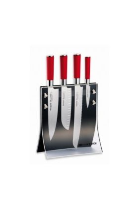 - Bestückt ist der Messerblock mit folgenden Messern aus der Serie Red Spirit.