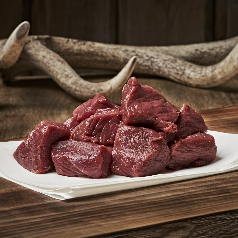 Junghirschgulasch geschnitten aus der Schulter