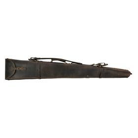 Exklusives Doppel-Flintenfutteral aus hochwertigstem und wasserfestem Nubuk-Rindsleder (imprägniert), handgenähter Verschluss und Kappe. Futter aus synthetischem Fell. Die Griffe sind ebenfalls in Leder gearbeitet. Der Saum wurde umnäht. Inkl. Schultertrageriemen aus Leder, gepolstert, rückseitig mit Neopren. Länge: 125 cm (Andere Längen auf Anfrage). Auf Wunsch auch mit echtem Schaffell lieferbar.