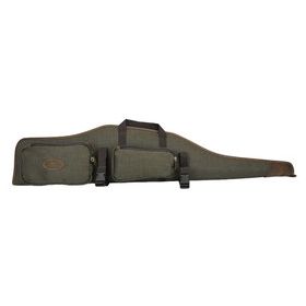 Waffenfutteral für Selbstladebüchsen mit Zieloptik aus extrem abriebfestem Cordura©-Gewebe und hochwertigstem und wasserfestem Nubuk-Rindsleder (imprägniert). Zwei Außentaschen, einstellbare Riemen und Schultergurt. Futter aus synthetischem Fell. Der Saum wurde genäht. Das Büchsenfutteral kann komplett geöffnet werden (10 mm Reißverschluss von YKK). Lieferbare Längen: 115 und 110 cm.