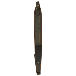 Gewehrriemen aus extrem abriebfestem Cordura©-Gewebe (Polyamid) und hochwertigstem und wasserfestem Nubuk-Rindsleder (imprägniert), rückseitig gepolstert mit rutschfestem Neopren und robusten Schnallen. Der Saum wurde komplett umnäht. In der Variante BR07/EX/P mit Patronenetui für zwei Schuss.