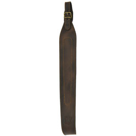 Gewehrriemen aus hochwertigstem und wasserfestem Nubuk-Rindsleder (imprägniert), rückseitig mit rutschfestem Veloursleder und robusten Schnallen. Der Saum wurde außerdem genäht und handgemalt. Länge: 93 cm