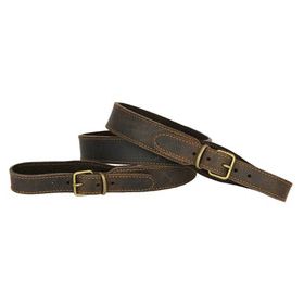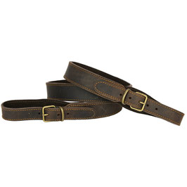 Gewehrriemen aus hochwertigstem und wasserfestem Nubuk-Rindsleder (imprägniert), rückseitig mit rutschfestem Veloursleder und robusten Schnallen. Der Saum wurde außerdem genäht und handgemalt. Länge: 102 cm