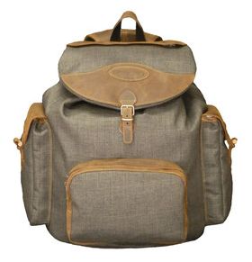 Rucksack aus extrem abriebfestem Polyamidgewebe und hochwertigstem und wasserfestem Nubuk-Rindsleder (imprägniert), Futter aus waschbarem und luftdurchlässigem Stoff. Vordertasche, Innentasche mit Reißverschluss und individuell einstellbaren Schulterriemen. Der Saum wurde genäht und handbemalt.