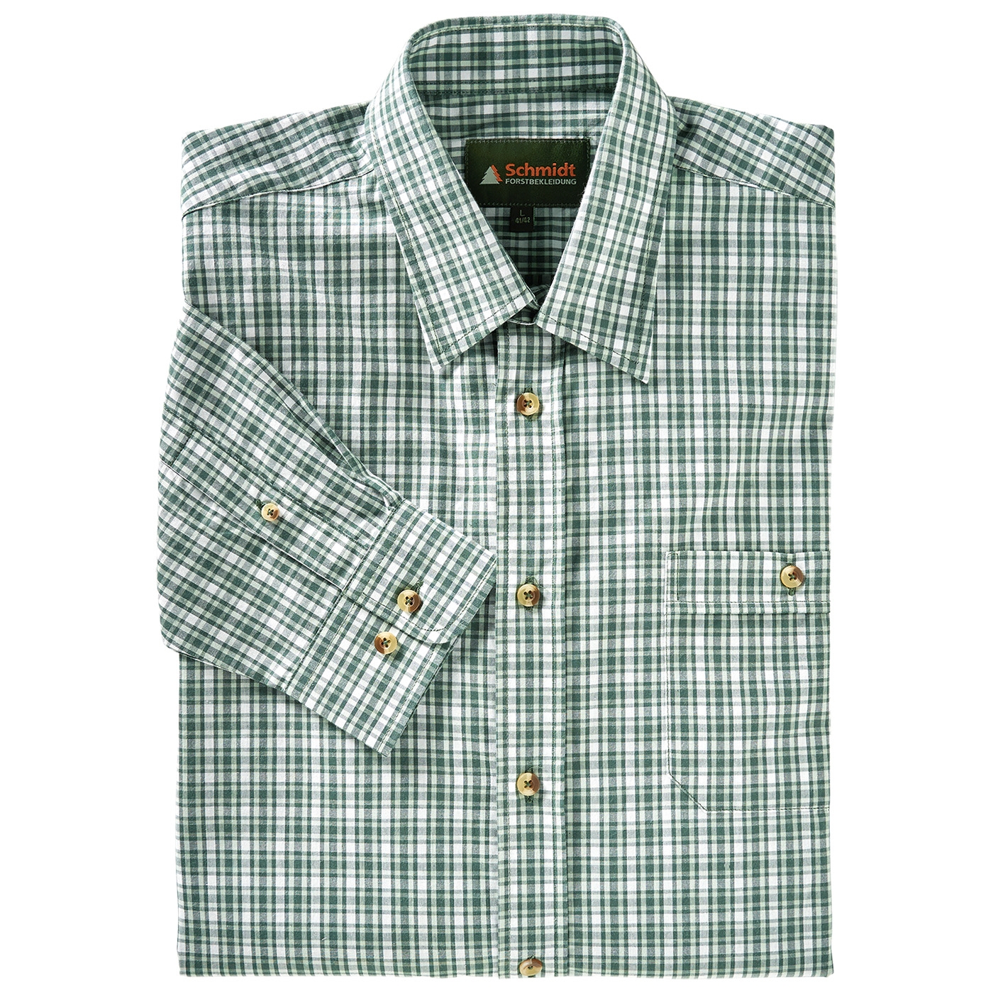 Klassisches Karohemd von Schmidt mit Umlegekragen ? der perfekte Begleiter für Ihr nächstes Outdoor-Abenteuer oder den Jagdausflug. Hergestellt aus hautsympathischer Baumwolle bietet dieses Hemd höchsten Tragekomfort, selbst bei längeren Einsätzen im Freien. Die bequeme Weite und die optimale Rückenlänge sorgen für eine ideale Passform. Die durchgehende Knopfleiste ist mit stilvollen Knöpfen in Naturoptik versehen, zudem gibt es links eine praktische Brusttasche mit Knopfverschluss für zusätzlichen Stauraum von kleinen Utensilien. Ob auf der Pirsch oder beim Wandern ? mit diesem Karohemd sind Sie immer gut ausgestattet.