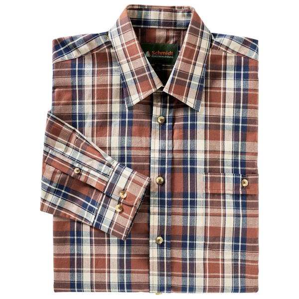 Klassisches Karohemd von Schmidt mit Umlegekragen ? der perfekte Begleiter für Ihr nächstes Outdoor-Abenteuer oder den Jagdausflug. Hergestellt aus hautsympathischer Baumwolle bietet dieses Hemd höchsten Tragekomfort, selbst bei längeren Einsätzen im Freien. Die bequeme Weite und die optimale Rückenlänge sorgen für eine ideale Passform. Die durchgehende Knopfleiste ist mit stilvollen Knöpfen in Naturoptik versehen, zudem gibt es links eine praktische Brusttasche mit Knopfverschluss für zusätzlichen Stauraum von kleinen Utensilien. Ob auf der Pirsch oder beim Wandern ? mit diesem Karohemd sind Sie immer gut ausgestattet.