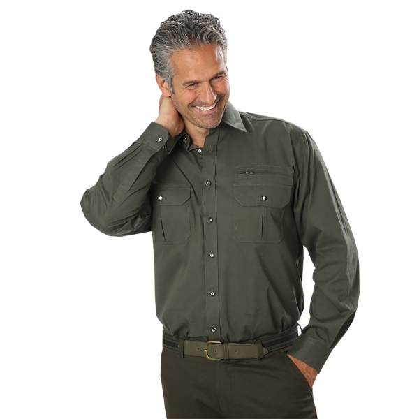 Jagdhemd Nürnberg von Schmidt, das ideale Hemd für die Jagd. Hergestellt aus hochwertiger Baumwolle, bietet es nicht nur Komfort, sondern auch Langlebigkeit. In stilvollem Olivgrün gehalten, passt es perfekt in jede Jagdlandschaft. Zwei Brusttaschen und eine zusätzliche Reißverschlusstasche bieten reichlich Platz für Ihre Ausrüstung. Die Knöpfe in Horn-Optik verleihen dem Hemd einen klassischen, zeitlosen Look. Perfekt für jede Jagdsaison und unverzichtbar für passionierte Jäger.