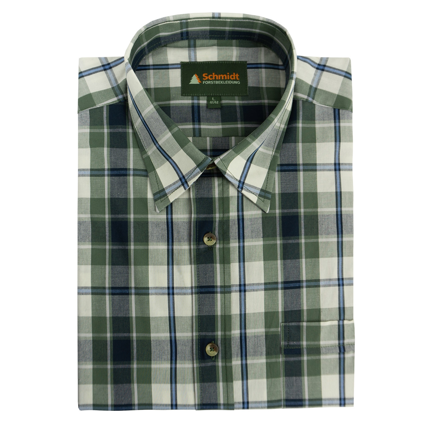 Karohemd in oliv/beige/blau von Schmidt ? der perfekte Begleiter für Ihre nächste Outdoor-Abenteuer oder Jagdausflug. Hergestellt aus hautsympathischer Baumwolle bietet dieses Hemd höchsten Tragekomfort, selbst bei längeren Einsätzen im Freien. Die bequeme Weite und die optimale Rückenlänge sorgen für eine ideale Passform, während die praktische Brusttasche zusätzlichen Stauraum für kleine Utensilien bietet. Ob auf der Pirsch oder beim Wandern ? mit diesem Karohemd sind Sie immer gut ausgestattet.